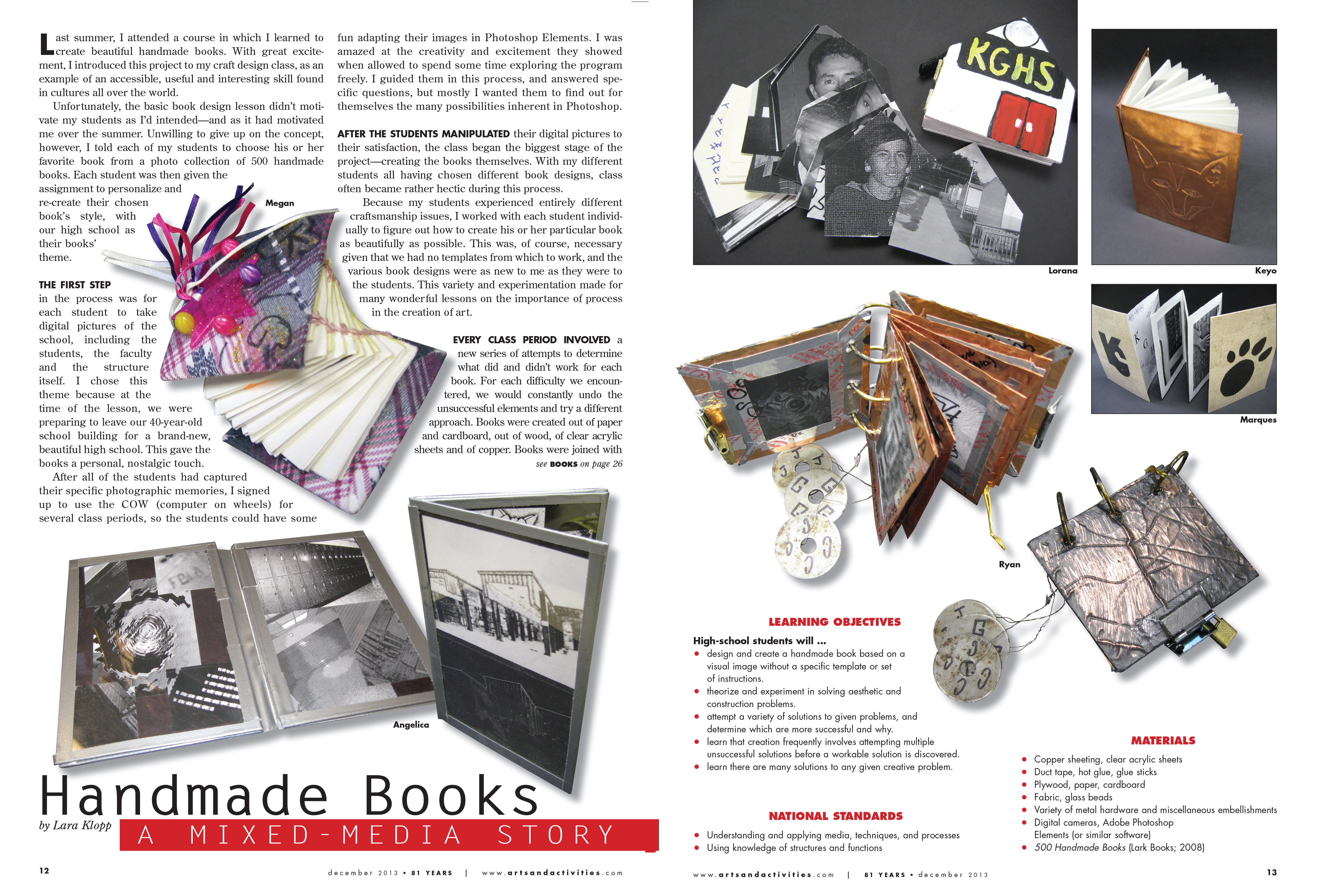 When a project is first assigned, brainstorming and practicing with the medium to be used are the initial steps leading to the creation of the final work. Both involve a back-and-forth between teacher and student, a ‘how about this idea?’ countered with a ‘that works, but have you thought about how you’re going to include this element?’ Or a ‘I’m not sure how to get this effect with the medium’ countered with a ‘let me show you … now you try.’ During this process I, as a teacher, am assessing and helping the student to shape a concept for the finished work, while also aiding the development of proficiency with the materials used, and suggesting various means of improving craftsmanship.